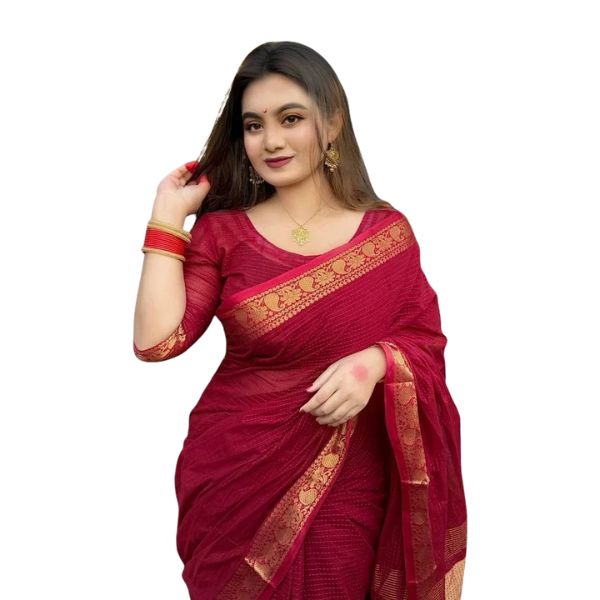 🛍 Product Description – Original Cotton Sharee (Merun Color)